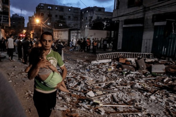 Gaza, mai 2021 – Les bombardements israéliens sur Gaza ont été particulièrement violents et ont rappelé les bombardements de 2014, 2011, 2008 et 2009… Pour ne citer que les plus récents. Ces campagnes répétitives et meurtrières pour les civils autant que les combattants de la résistance palestinienne, sont présentées comme autant d’arguments de vente pour le matériel mortifère israélien, avec la mention « Testé sur le terrain » – Photo : via Euromed Monitor