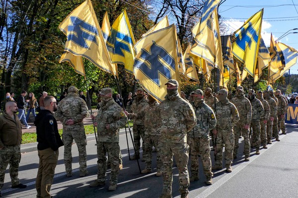 An Azov regiment in Kyiv, Ukraine on 10/14/2020. © Review News / Shutterstock
