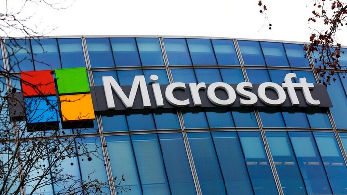 Le logo de Microsoft à l’extérieur de son siège social à Paris, le 8 janvier 2021