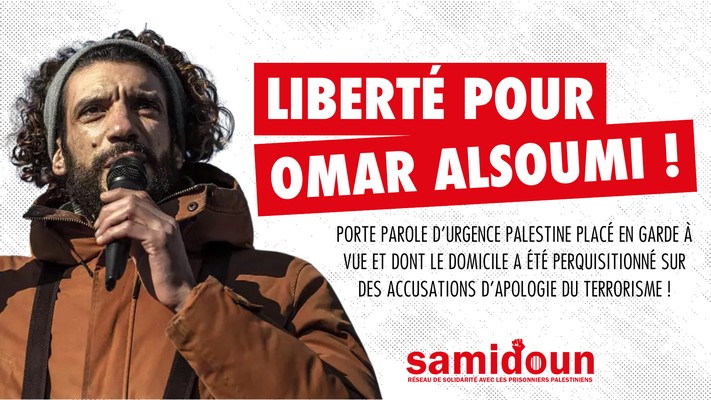 Le Collectif National pour une Paix Juste et Durable entre Palestiniens et Israéliens (CNPJDPI) dénonce la mise en garde à vue d’Omar Alsoumi, Palestinien en exil et animateur d’Urgence Palestine.