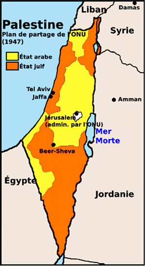 En 1947, une résolution de l’Assemblée générale de l’Onu avait décidé du partage de la Palestine, alors sous mandat britannique, en deux États, l’un israélien et l’autre palestinien.