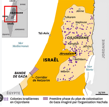 Le nettoyage ethnique en cours dans la bande de Gaza et en Cisjordanie témoigne que ce “Plan Daleth“ n’a jamais été abandonné… Et il n’est sans doute pas insensé de penser qu’il guide Netanyahu et consorts dans le projet global visant à la création de “Eretz Israël“ (voir ce terme).