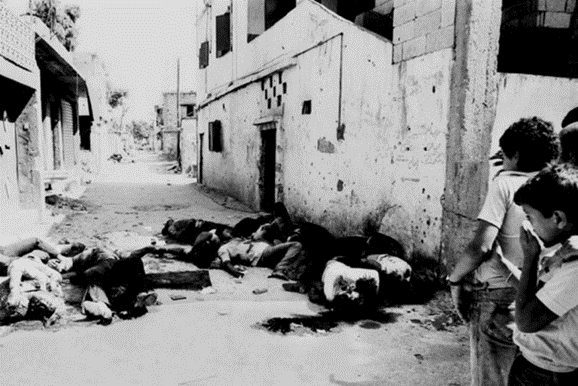 En deux jours, entre 3.500 et 5.000 réfugiés civils y ont été massacrés par les “Phalanges libanaises“, une milice chrétienne, avec la collaboration active de l’armée israélienne sous les ordres de Sharon (voir ce nom).