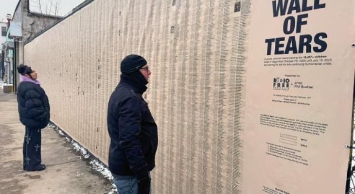 Intitulée « Mur des larmes » (Wall of Tears), l’installation recense les noms de plus de 18 400 enfants morts entre le 7 octobre 2023 et le 19 juillet 2025, selon les données du ministère de la Santé de Gaza.
