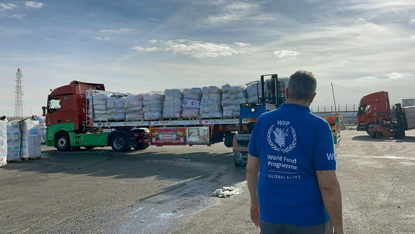 © WFP. Les camions d’aide du PAM entrent à Gaza par les postes frontières de Zikim et Kerem Shalom.