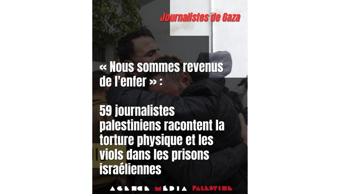 Le Comité pour la protection des journalistes ou CPJ (en anglais : Committee to Protect Journalists) a publié un nouveau rapport le 19 février 2026 intitulé « Nous sommes revenus de l’enfer », dans lequel 59 journalistes palestiniens racontent la torture qu’ils ont subie dans les prisons israéliennes. Tous, sauf un, ont déclaré avoir subi des actes de torture, des mauvais traitements ou d’autres formes de violence en raison de leur travail.