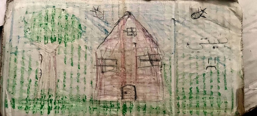 ONU Info. Un dessin réalisé par la fille d’un journaliste à Gaza sur un morceau de carton,