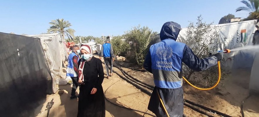 © UNRWA. Un employé de l’UNRWA pulvérise des abris à Gaza (photo d’archives).