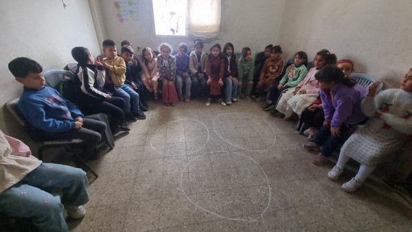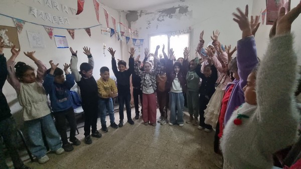 Ces jeunes ont organisé une activité d’animation mi-avril 2026 dans un centre éducatif de Gaza.