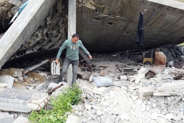 ONU Info. Mohammed al-Jathbah collecte des pierres des décombres pour construire un abri pour sa famille.