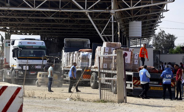 © UNICEF/Eyad El Baba. Les convois d’aide entrent dans la bande de Gaza par le point de passage de Rafah.